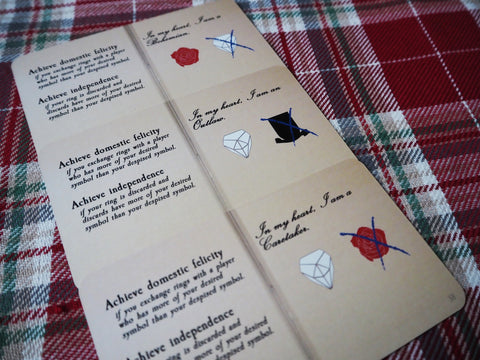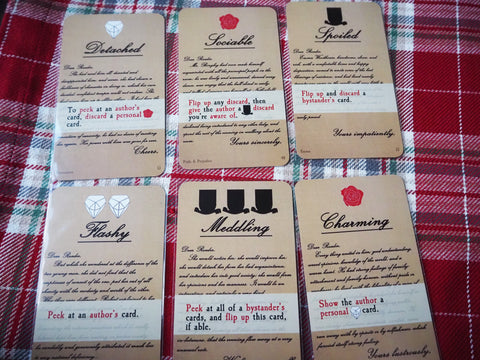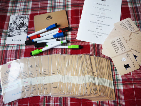 Persuasion is described by its designer as a game of deduction, catfishing, and conceding power. Like the books of Jane Austen, the players are primarily concerned with marriage and personal happiness. You'll reveal traits to prospective matches, hoping to become engaged to a player who has more of the things you value than the things you despise. They're hoping to find the same in you, though that's not necessary for you to win. Some parts you'll reveal, and others might be kept as secrets. Is it important that your partner win alongside you? Or will you be a ruthless adventurer, eager to trap someone in a bad marriage that benefits you? Or maybe you'll pivot to independence, accepting no suitor at all?